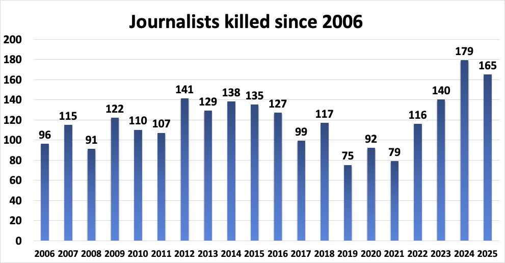 165 MEDIA WORKERS KILLED IN 2025